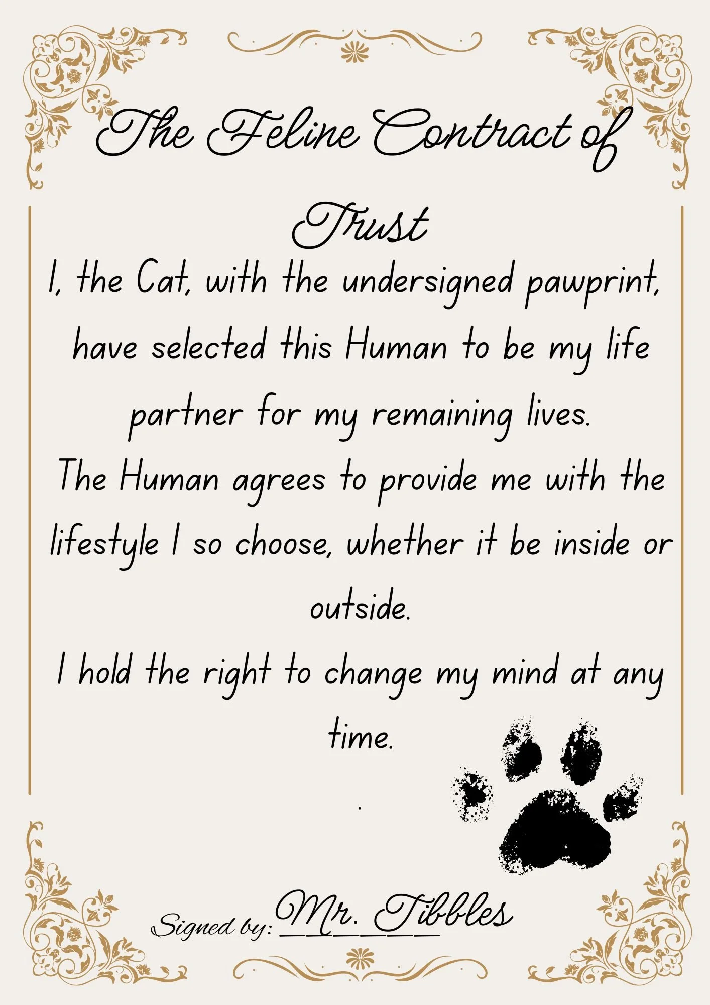 Anyone who has lived with a cat knows that happy homes are a democracy. Not a dictatorship.